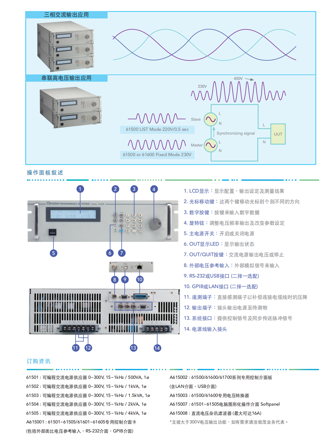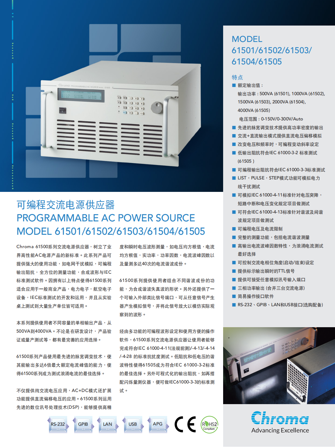 Chroma进阶可编程交流电源MODEL 61501/61502/61503/61504