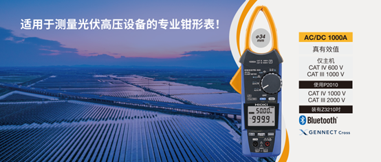 最高1000A,能够满足光伏高压设备大电流的测量需求。当用于光伏面板的开路电压检查时,最高可测 DC 2000V,完美适配当前光伏高压化趋势下的电压测量要求,为测量的准确性和可靠性提供了坚实保障。