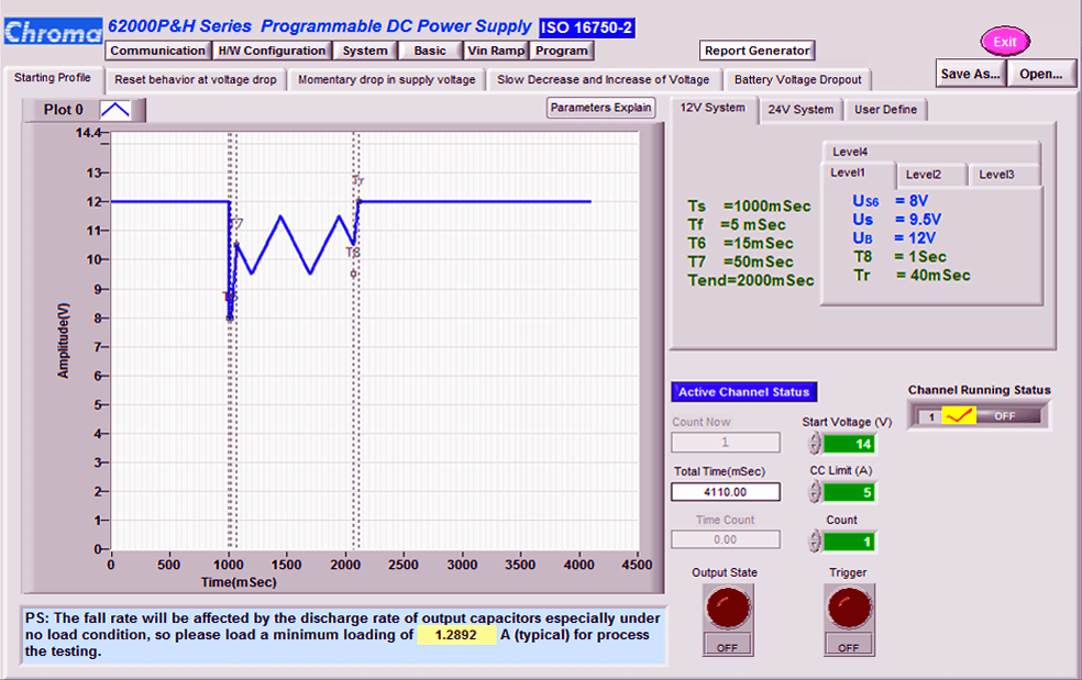 62000P系列电源供应器另一个独特的功能为可建立复杂的DC暂态波形。此功能可对设备进行输入电压漏失瞬断和其他电压变化等测试,是用于飞机设备测试、反用换流器测试和其他会产生电压中断之设备测试的理想选择。其应用的范围包括DC/DC 转换器和反用换流器、压降测试、引擎启动模拟、电池自动充电、电子产品生命周期测试等等。