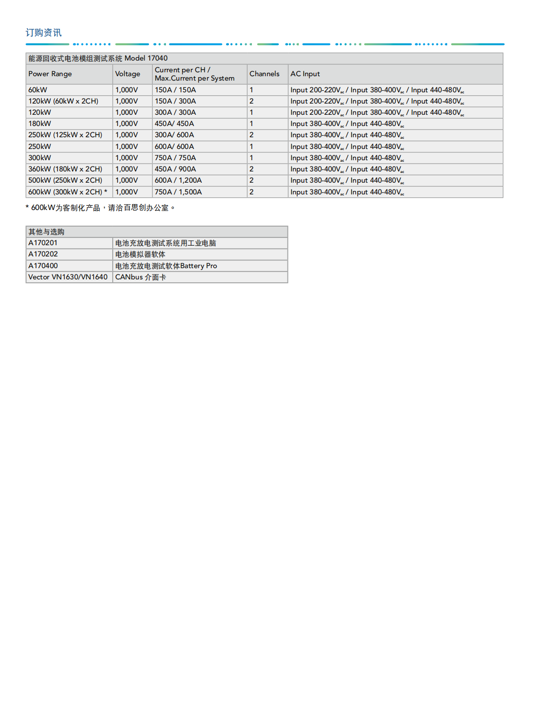 名  称:能源回收式电池模组测试MODEL 17040
