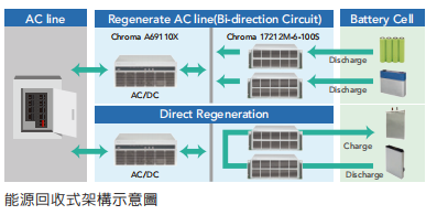 Chroma 17010系统针对大电流机种实现低碳排的绿能产业及避免放电时电能以负载消耗产生废热,提供高精度、高效率、且电力最佳化的能源回收架构设计。