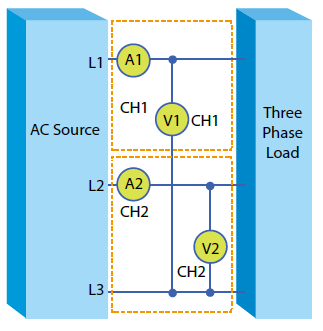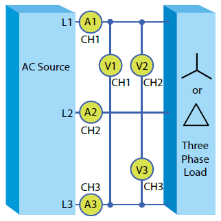 同时,也可使用3P3W三相三线式所支援的两瓦特计量测方式对于三相交流电源待测物进行功率量测,例如:电源供应器功率量测应用。以及使用内建功率效能计算功能计算出电源供应器的整体效能。