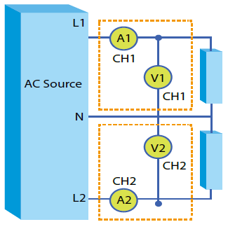 选择1P2W单相两线式最多可同时量测4个待测物(66204),每个模组最小电流量测档位5mA,可符合空载功率(<30mW)量测以及能源之星(Energy Star)、IEC62301、EN50564对于功率量测要求。因此非常适合应用于电脑伺服器、机上盒、电视、LED照明电源供应器、电池充电器等产品测试。