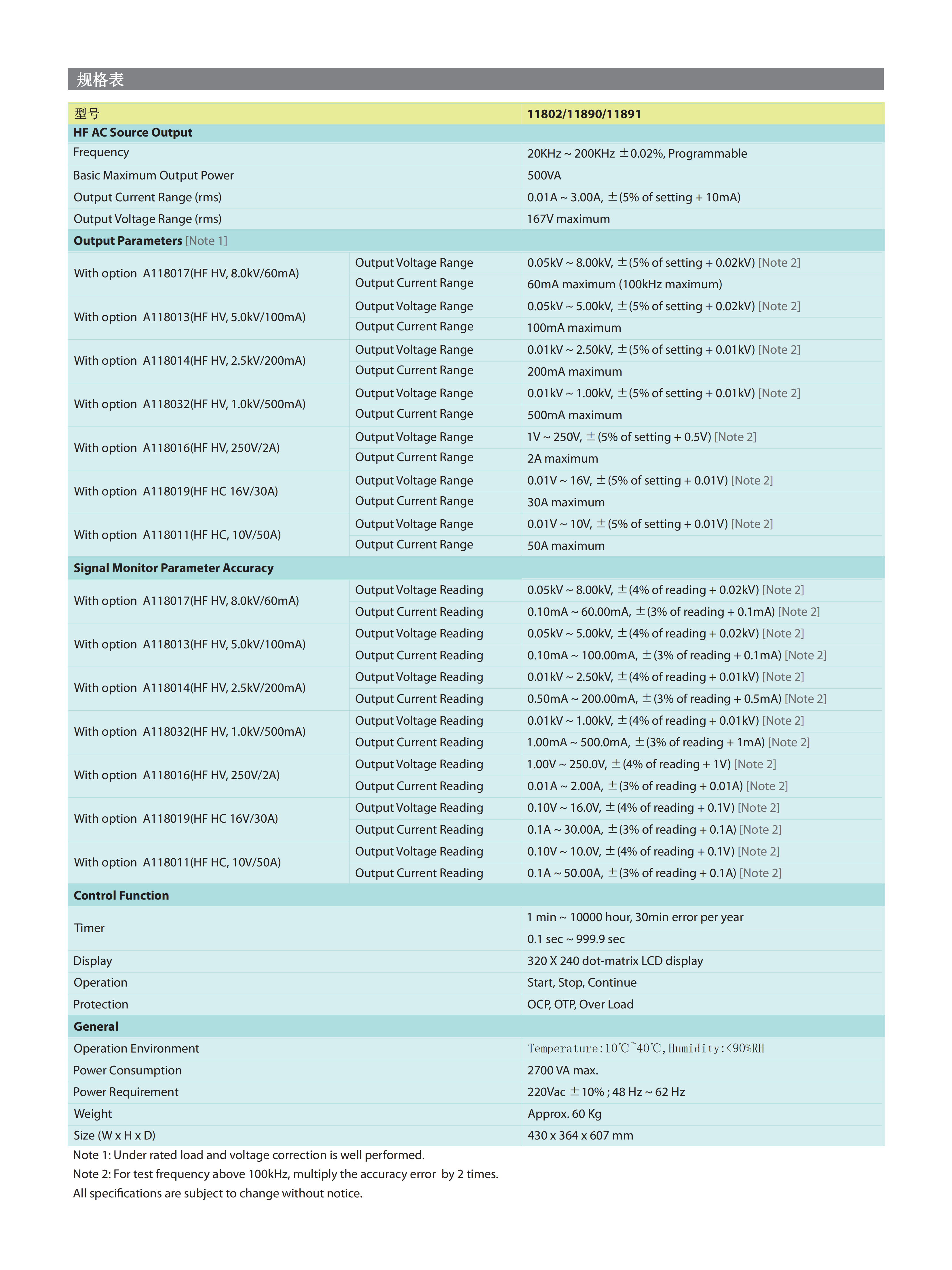 名  称:可程式高频交流测试器MODEL 11802/11803/11805/11890/11891